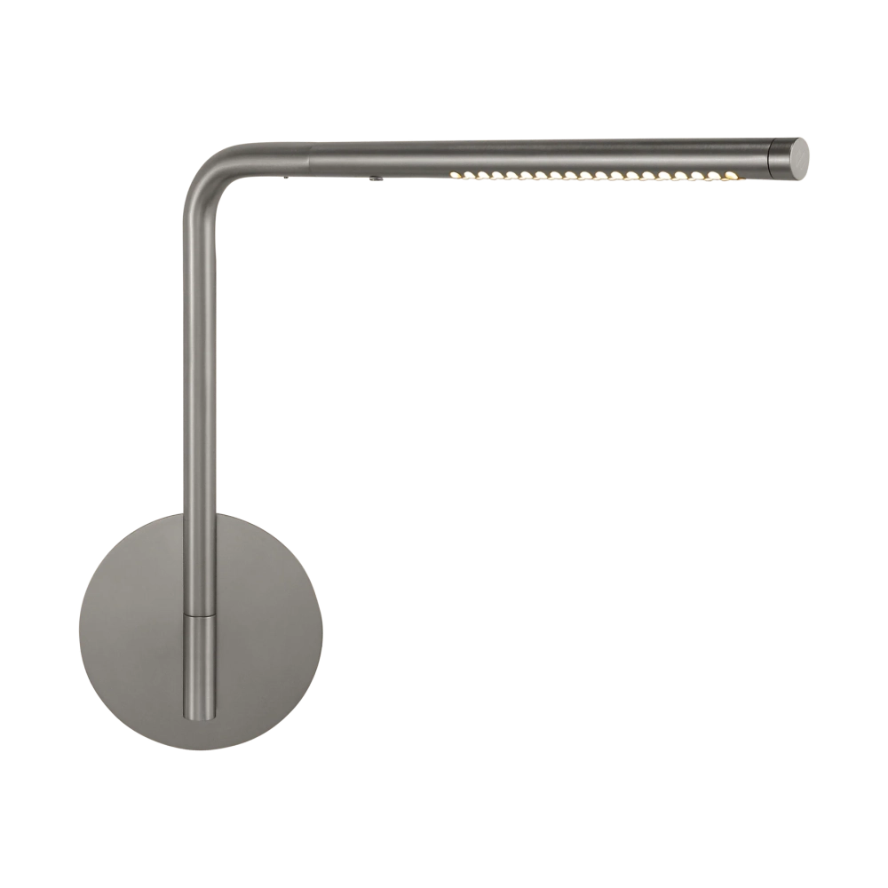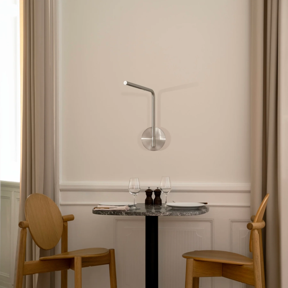 Med sin slanke arm, der strækker sig fra væggen, og et drejeligt lysehoved, kan lyset nemt rettes præcist, hvor du har brug for det – ideelt til både arbejde og afslapning.