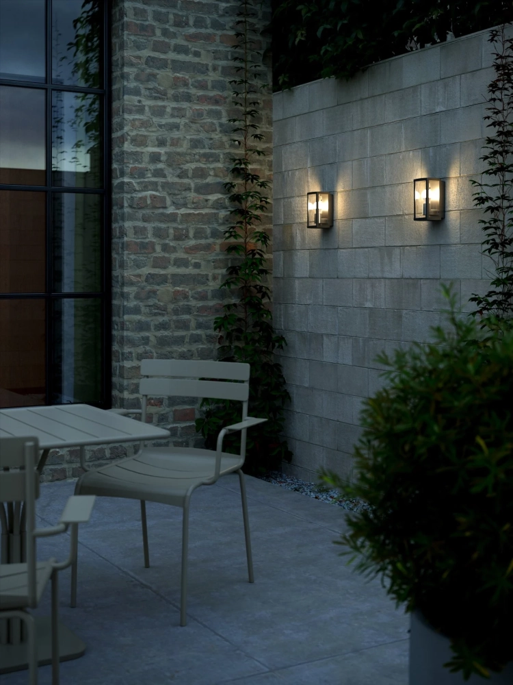 Luchy væglampen fra Nordlux er en moderne udgave af den klassiske udendørs lanterne. Den sorte metalramme kombineret med de store glasflader giver et let og luftigt udtryk, som passer perfekt til både moderne og klassiske boliger