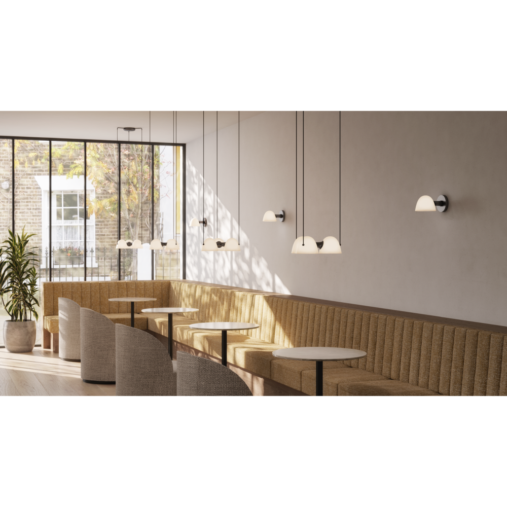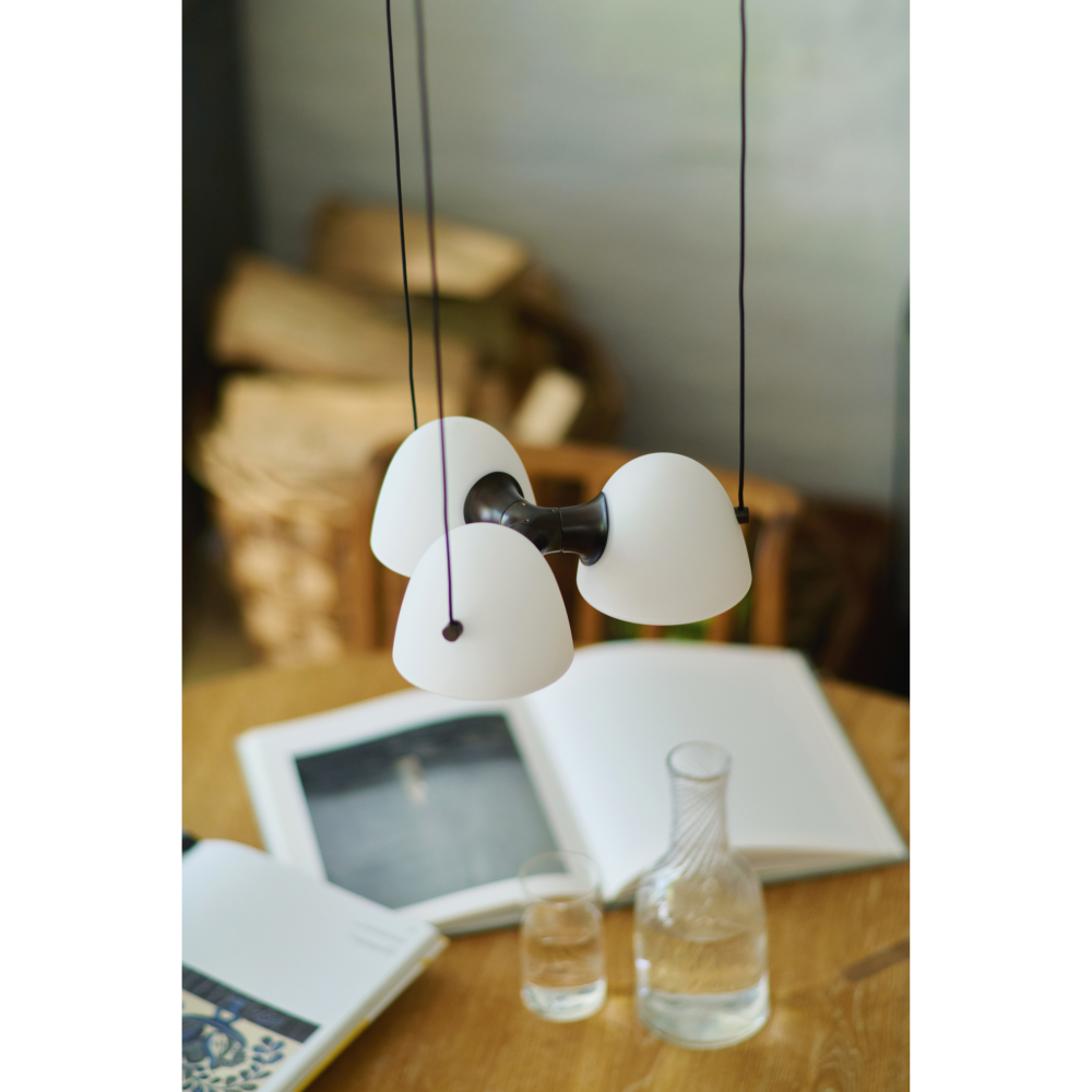 Lyset filtreres gennem det tredobbelte lag af opalglas, som sikrer en behagelig og blændfri belysning, mens messingkomponenterne skaber en varm kontrast til lampens bløde former. Fuse-serien er kendt for sin ro, balance og materialemæssige kvalitet. Hver lampe er skabt med fokus på håndværk og detalje – design, der både føles moderne og tidløst.