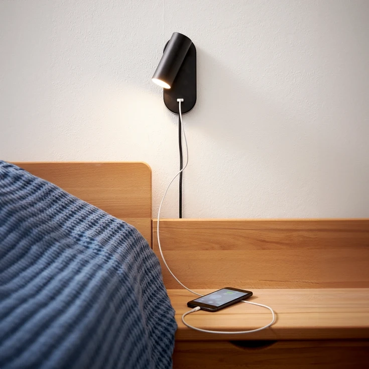 Den vægmonterede lampe fra Nielsen Light er ideel at bruge som sengelampe eller læselampe.