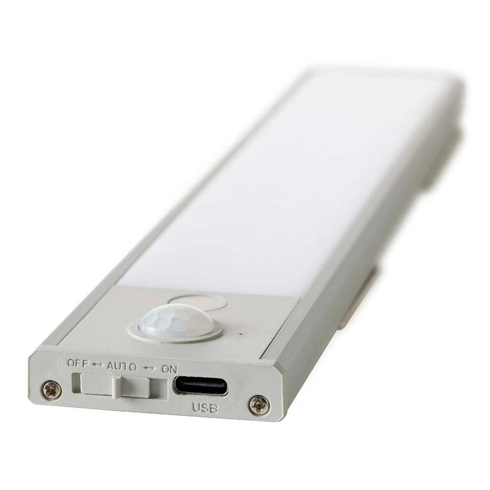 Sense LED lysbar leveres med genopladeligt batteri og oplades via USB, så du undgår ledninger og fast installation. Den kan monteres nemt med skruer eller dobbeltsidet tape — alt efter overflade og behov. Konstruktionen er robust og designet til at sidde tæt mod vægge eller møbler uden at skille sig ud.