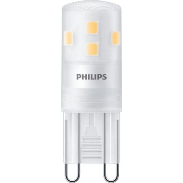 Philips CorePro G9 LED-pæren er en energibesparende og kompakt erstatning for traditionelle G9 halogenpærer på op til 20W. Med et forbrug på kun 1.9 watt leverer den en lysstyrke på 204 lumen og har en varm hvid farvetemperatur på 2700 Kelvin, hvilket skaber en behagelig og hyggelig stemning.