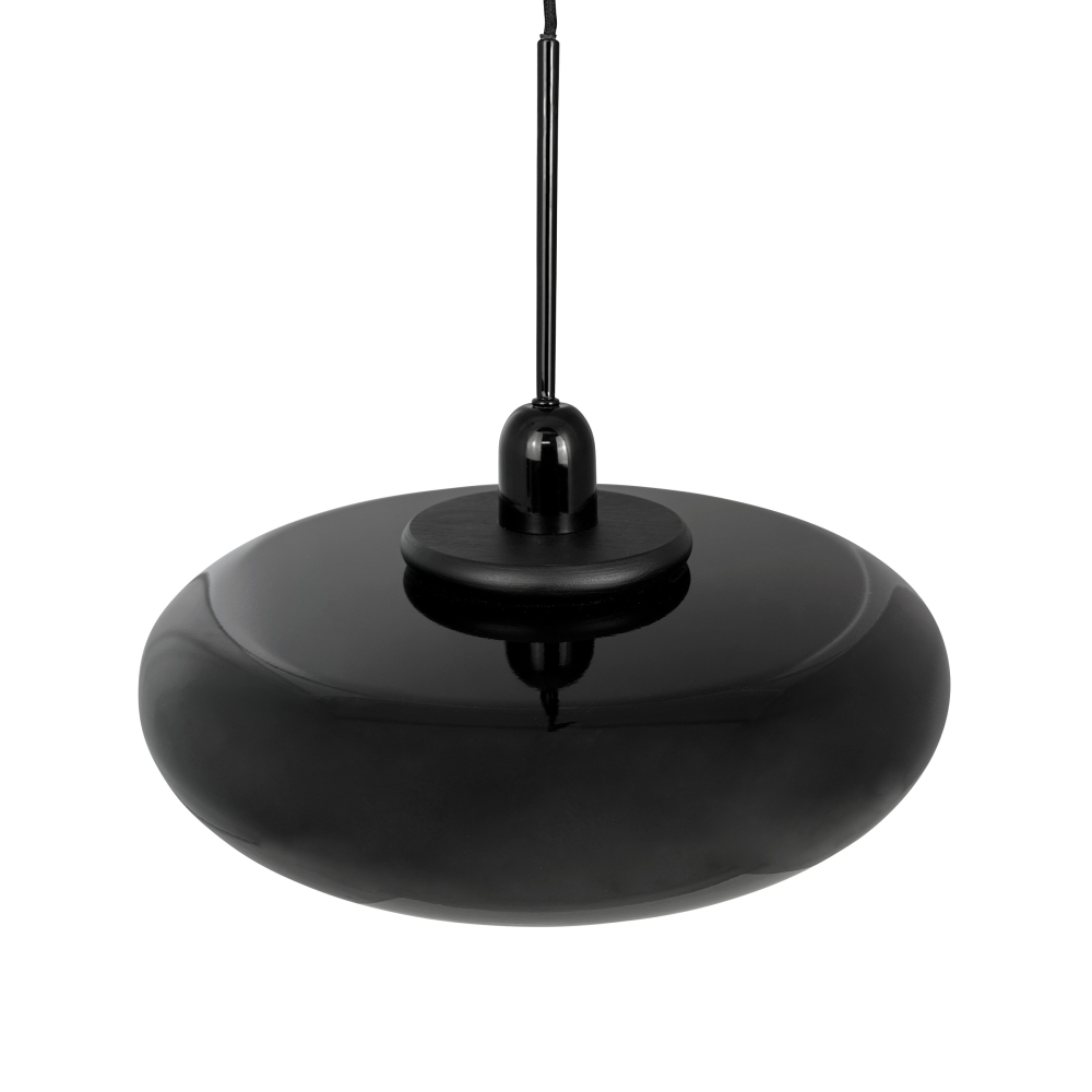 Planet pendellampen i blank sort med sort ophæng kombinerer enkelhed og kontrast i én belysningsløsning. Planet pendellampen er skabt til at levere et stilfuldt og iøjnefaldende lyspunkt i dit hjem.
