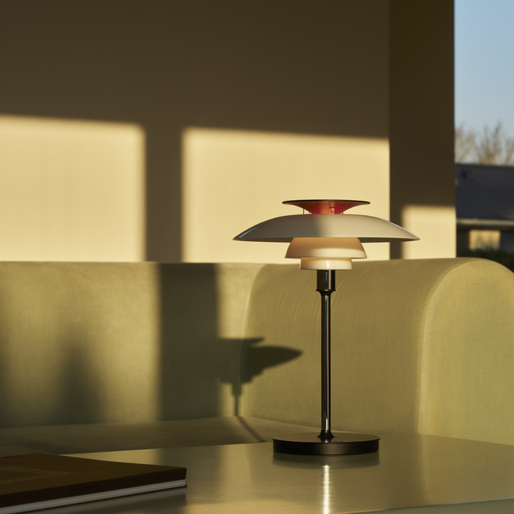 PH 80 Portable er en moderne og genopladelig bordlampe i Poul Henningsens ikoniske PH-serie, lanceret af Louis Poulsen. Som en bordlampe uden ledning giver den dig frihed til at skabe stemningsfuldt lys præcis, hvor du ønsker det – i stuen, på spisebordet, i soveværelset eller på terrassen under overdækning.