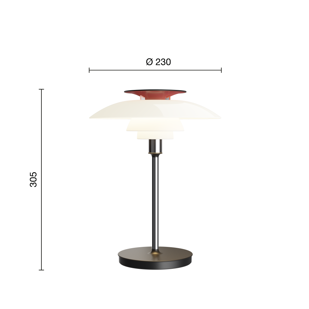 Denne genopladelige PH80 bordlampe er baseret på Henningsens reflekterende treskærmssystem, som sikrer et blændfrit og behageligt lys. Størstedelen af lyset ledes nedad, mens de opale skærme også spreder et diffust og blødt lys ud i rummet, hvilket skaber en harmonisk atmosfære.