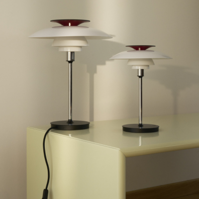 Lampens design kombinerer de ikoniske skærme i opal akryl med elegante detaljer i højglansforkromet aluminium. Den hvide topreflektor giver et rent og moderne udtryk, mens den røde reflektor på originalmodellen tilfører en intens, varm glød. Valget af lyskilde afgør farvetonen og stemningen i lyset, hvilket gør lampen fleksibel til både arbejdslys og hyggelig belysning. PH 80 er ideel på skrivebordet, i stuen, på natbordet eller i andre rum, hvor du ønsker at kombinere klassisk design med funktionelt lys.