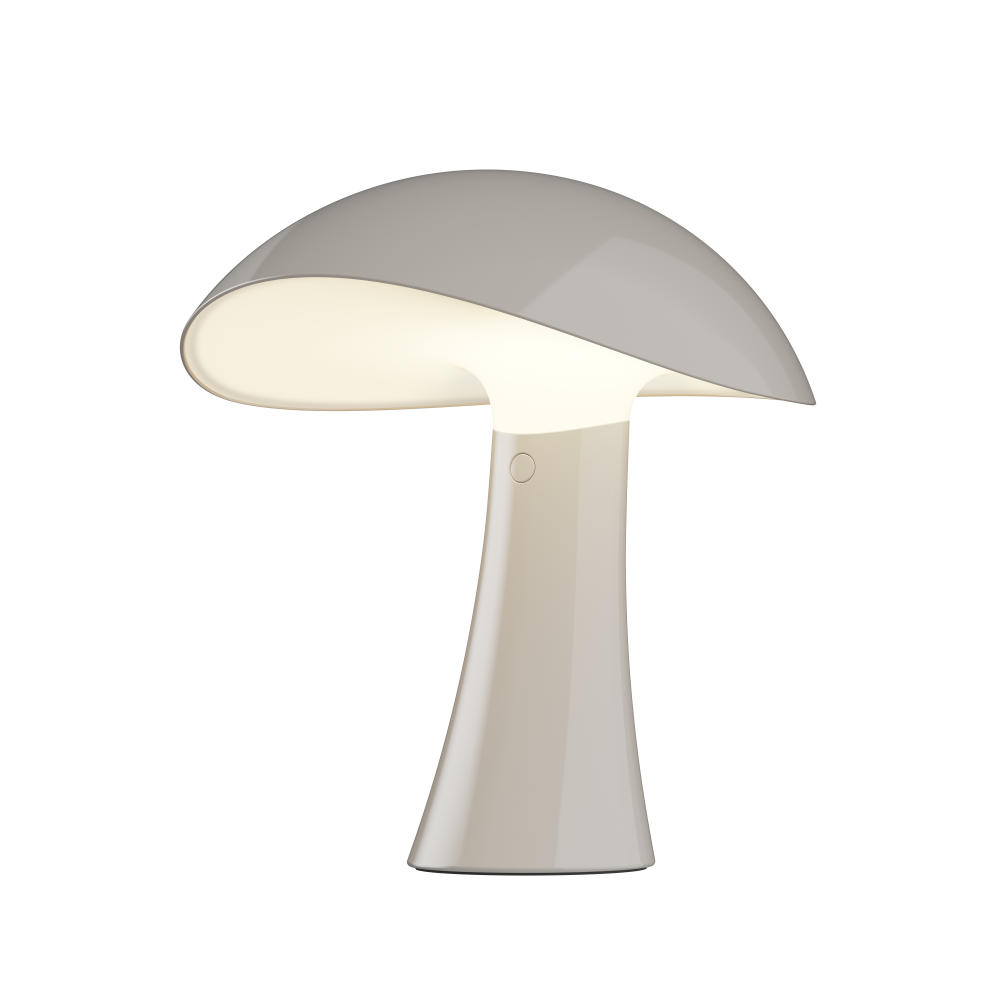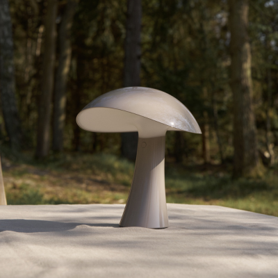 Rumee 220 Portable i farven Earth Grey (Grå) er en elegant og funktionel bordlampe uden ledning, designet af Gabriel Tan for Louis Poulsen. Inspireret af de bølgende kurver i en bred hat har lampen et skulpturelt formsprog, der leder tankerne mod naturens organiske former.