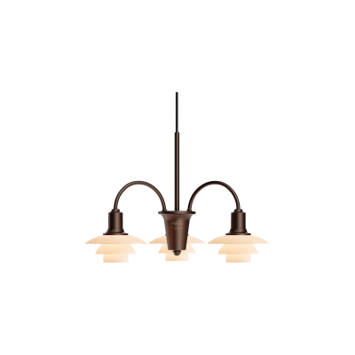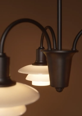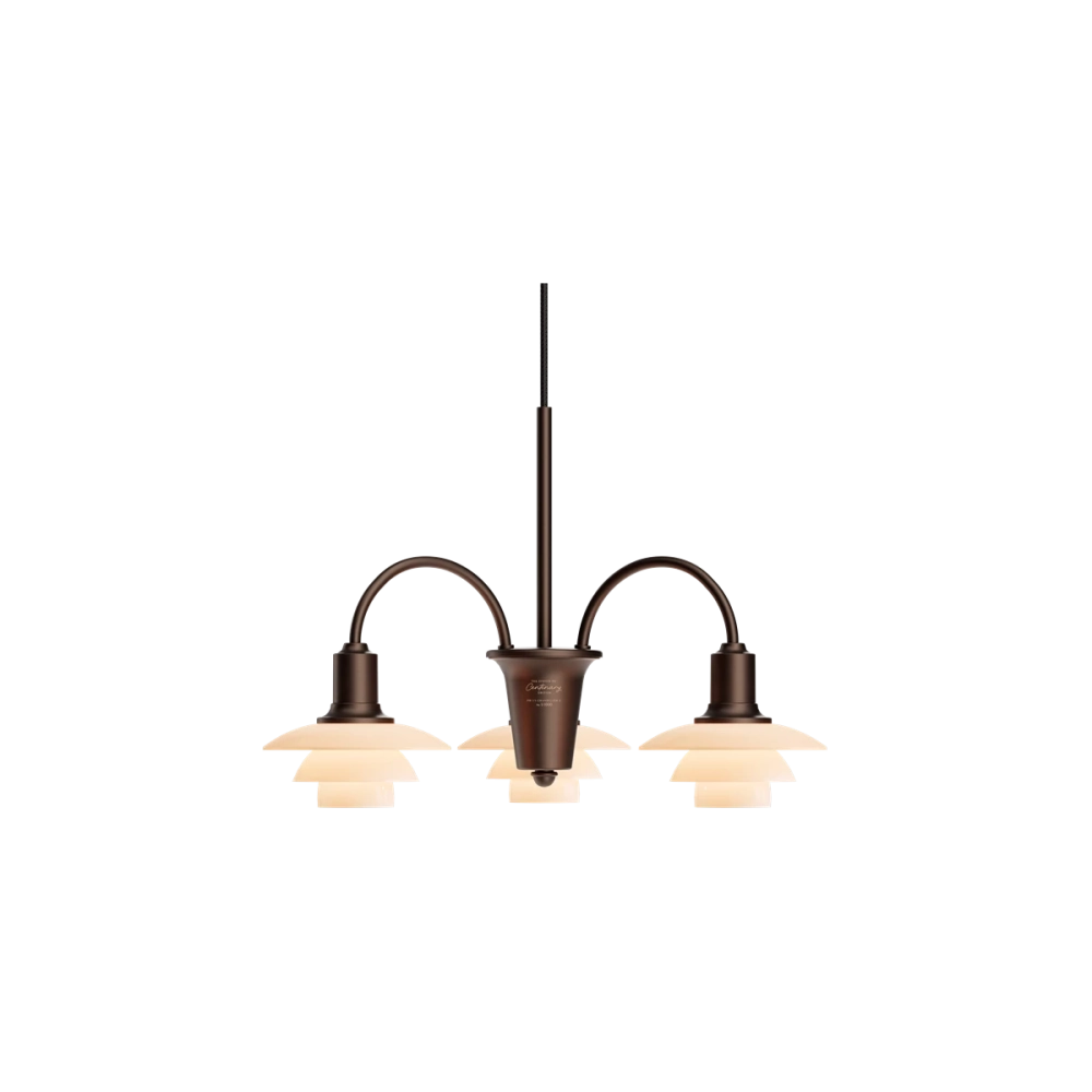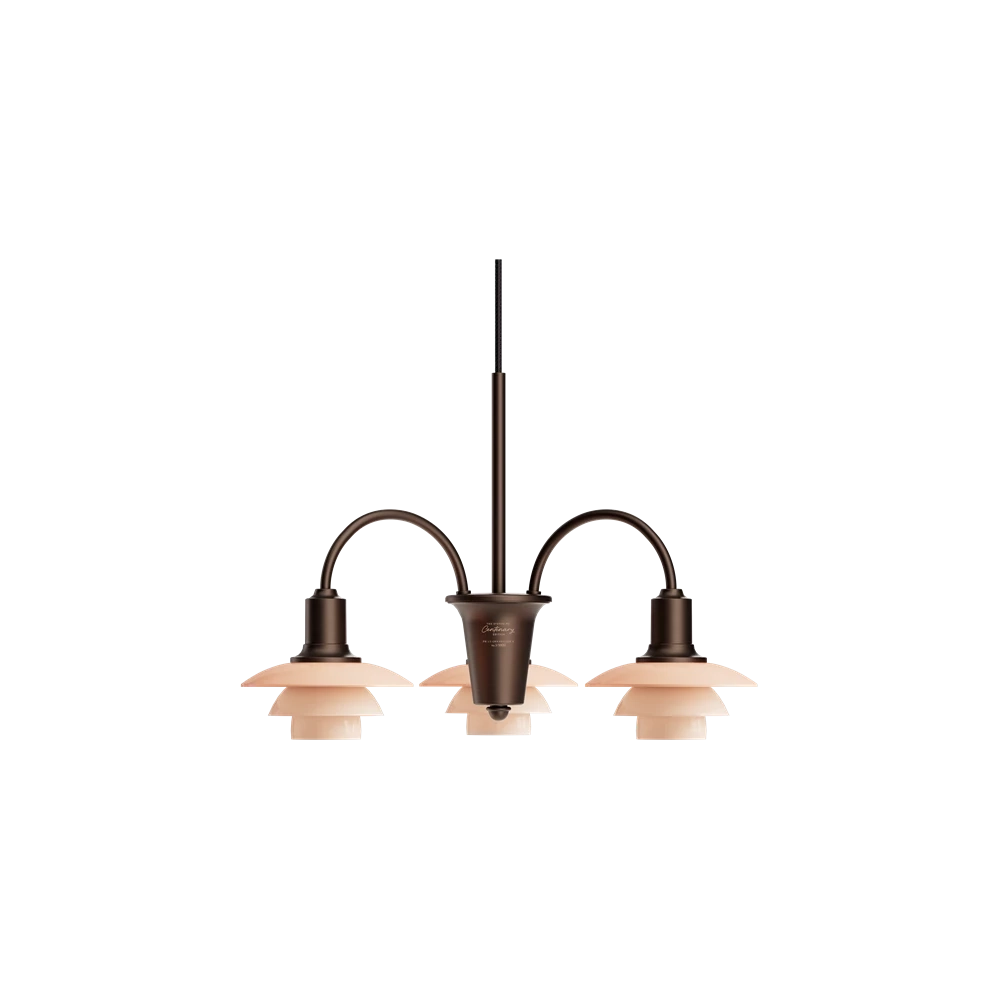 Oprindeligt kaldet "Bombardementskronen", var en del af Louis Poulsen-kataloget fra 1933 til midten af 1960'erne og er baseret på det ikoniske princip om den reflekterende System PH, der blev udviklet af Poul Henningsen i 1926. Poul Henningsen udviklede konceptet til denne lysekrone, så den kunne produceres i forskellige versioner med forskelligt antal buede arme, hver med et PH 1/1 glasskærmssæt, forbundet til en central kerne. Kernerne stables lodret, så der er plads til at alle skærmene eksponeres harmonisk. PH 1/1 Lysekrone Centenary Edition fås med 3, 6 og 9 arme og leveres med en bruneret messingfinish med hårfine linjer. Hvert treskærmssæt består af mundblæst, dusty terracotta-farvetopalglas, der udsender et blødt, diffuseret og blændfrit lys. Et skulpturelt design med historisk dybde, der virkelig skiller sig ud ved at tilføre et element af vintage til moderne interiør. Lysekronerne fås i et begrænset antal, 200 stk. af de 9-armede, 400 stk. af de 6-armede og 1000 stk. af de 3-armede. Hver lysekrone er omhyggeligt indgraveret med et unikt nummer i guld, hvilket gør den til et ægte samlerobjekt, der kan gå i arv gennem generationer.