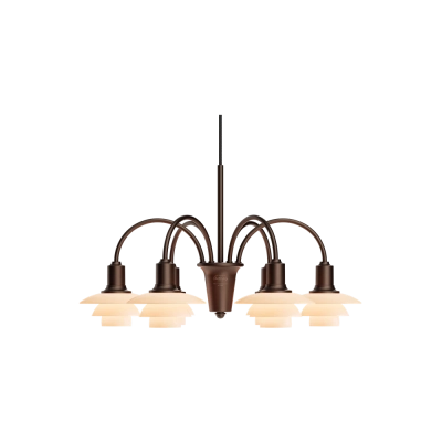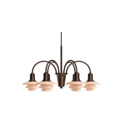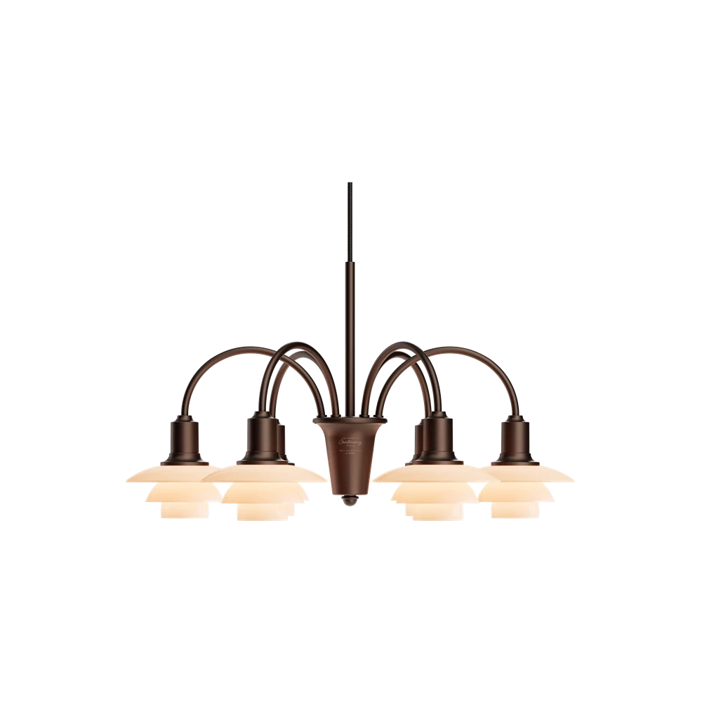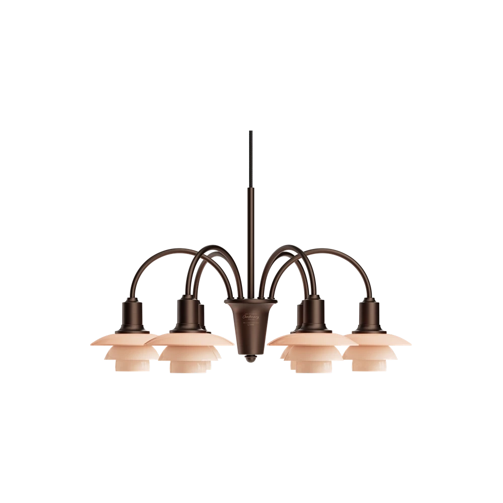 Oprindeligt kaldet "Bombardementskronen", var en del af Louis Poulsen-kataloget fra 1933 til midten af 1960'erne og er baseret på det ikoniske princip om den reflekterende System PH, der blev udviklet af Poul Henningsen i 1926. Poul Henningsen udviklede konceptet til denne lysekrone, så den kunne produceres i forskellige versioner med forskelligt antal buede arme, hver med et PH 1/1 glasskærmssæt, forbundet til en central kerne. Kernerne stables lodret, så der er plads til at alle skærmene eksponeres harmonisk. PH 1/1 Lysekrone Centenary Edition fås med 3, 6 og 9 arme og leveres med en bruneret messingfinish med hårfine linjer. Hvert treskærmssæt består af mundblæst, dusty terracotta-farvetopalglas, der udsender et blødt, diffuseret og blændfrit lys. Et skulpturelt design med historisk dybde, der virkelig skiller sig ud ved at tilføre et element af vintage til moderne interiør. Lysekronerne fås i et begrænset antal, 200 stk. af de 9-armede, 400 stk. af de 6-armede og 1000 stk. af de 3-armede. Hver lysekrone er omhyggeligt indgraveret med et unikt nummer i guld, hvilket gør den til et ægte samlerobjekt, der kan gå i arv gennem generationer.