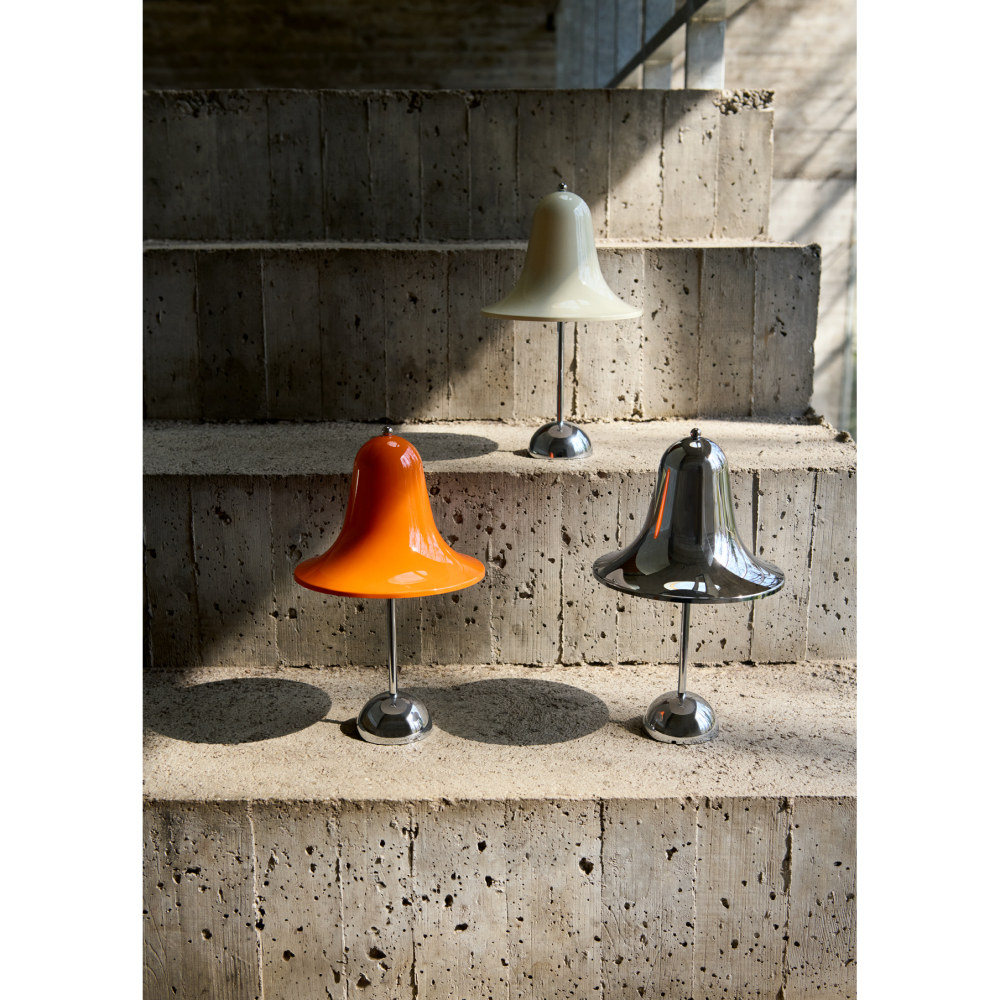 Pantop-designet fra 1980 er kendetegnet ved sin klokkeformede skærm, der spreder lyset nedad på en behagelig måde. I den bærbare udgave er designet bevaret, men opgraderet med moderne funktioner som LED, batteri og dæmpning, hvilket giver maksimal fleksibilitet. Pantop Portable findes i flere farver, herunder Vivid Orange, Cream White, Dark Teal, Night Blue, Chrome og flere, så du kan vælge den variant, der passer bedst til dit hjem.