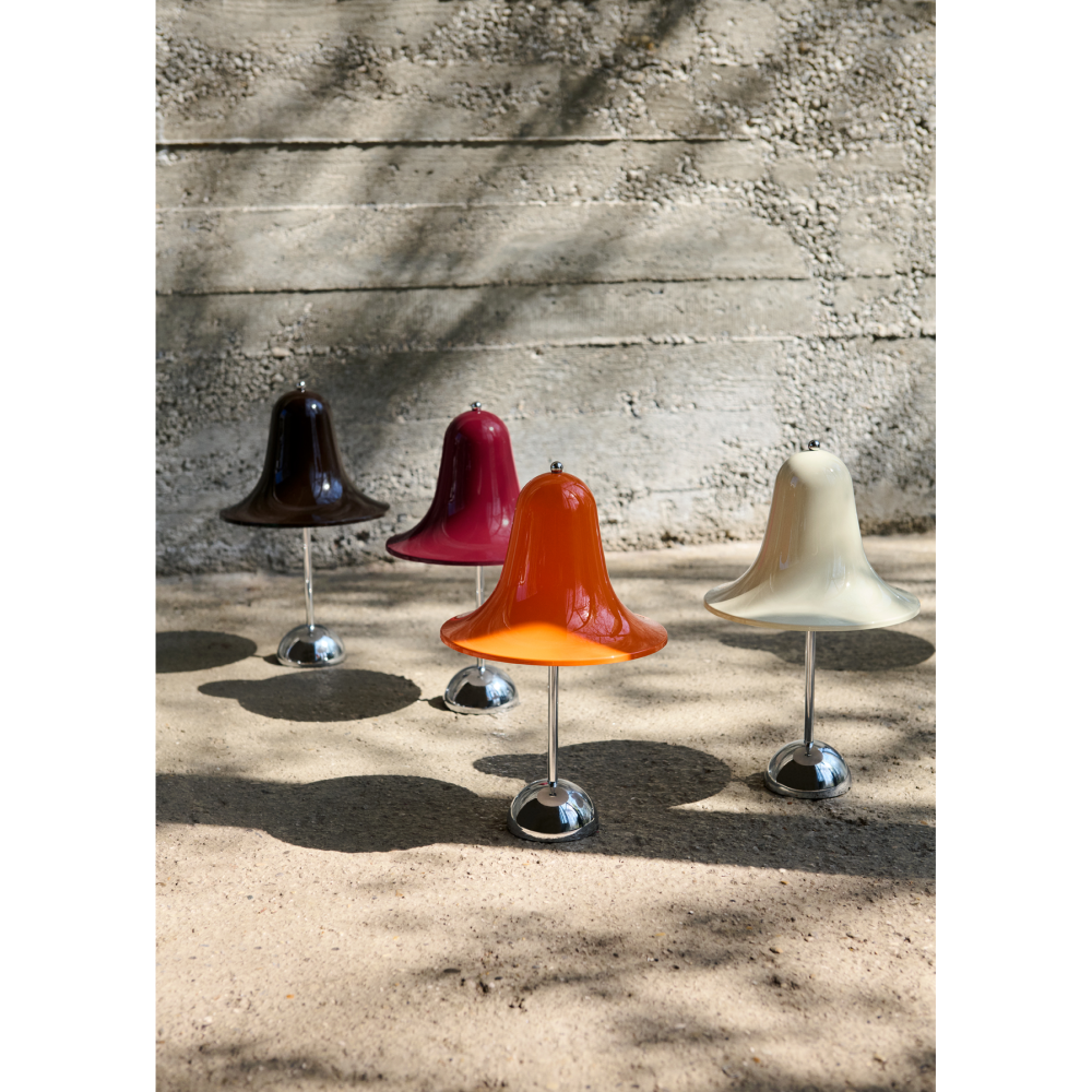 Pantop-designet fra 1980 er kendetegnet ved sin klokkeformede skærm, der spreder lyset nedad på en behagelig måde. I den bærbare udgave er designet bevaret, men opgraderet med moderne funktioner som LED, batteri og dæmpning, hvilket giver maksimal fleksibilitet. Pantop Portable findes i flere farver, herunder Cherry Red, Cream White, Dark Teal, Night Blue, Chrome og flere, så du kan vælge den variant, der passer bedst til dit hjem.