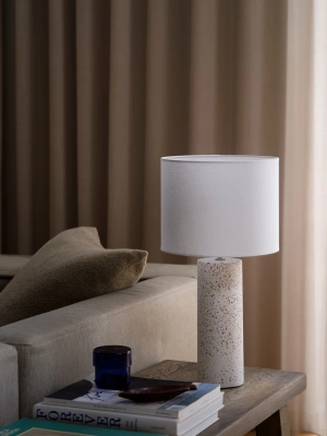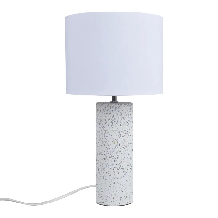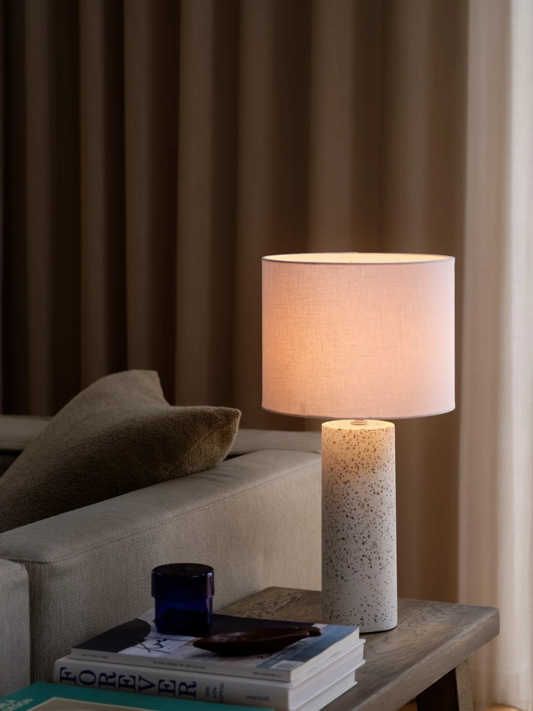 Antiga har et klassisk design med et moderne twist. Lampen har en smuk fod i terrazzo og en klassisk stofskærm, der sikrer et blødt og diffust lys.