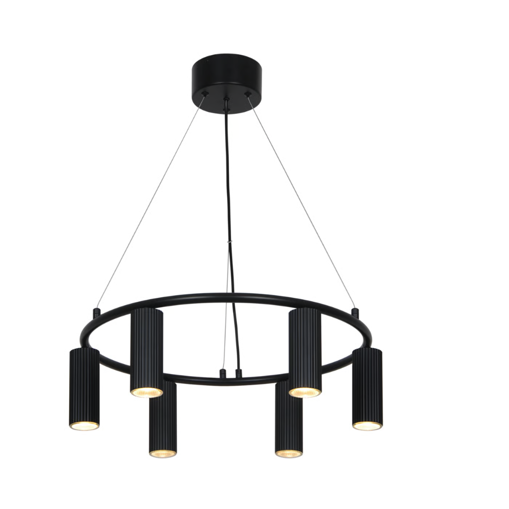 Vico Chandelier er en moderne pendel med et stilrent og skandinavisk udtryk. Den riflede overflade i sort aluminium giver lampen et eksklusivt look, der både fungerer som dekorativt element og praktisk belysning i hjemmet.