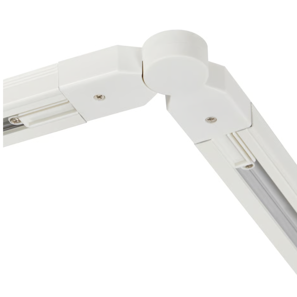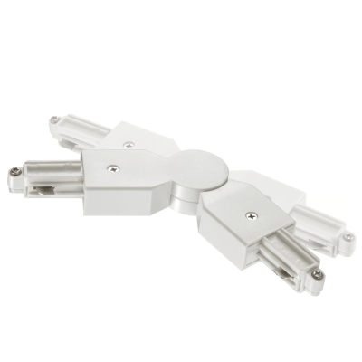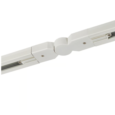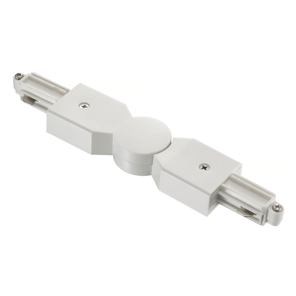 Drejbar strømadaptor til sammenkobling mellem to skinner. Trinløs drejbar fra 7-290 grader.