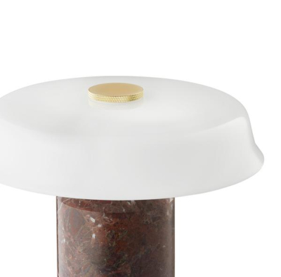 Trip No. 2 Burgundy/Opal er en eksklusiv og bærbar bordlampe, der forener funktionalitet med smukt design. Den elegante base i burgundyfarvet marmor kombineret med en mundblæst opalglasskærm giver lampen et unikt og luksuriøst udtryk. Hver lampe er et lille kunstværk i sig selv med naturlige variationer i materialerne, som gør den helt særlig.
